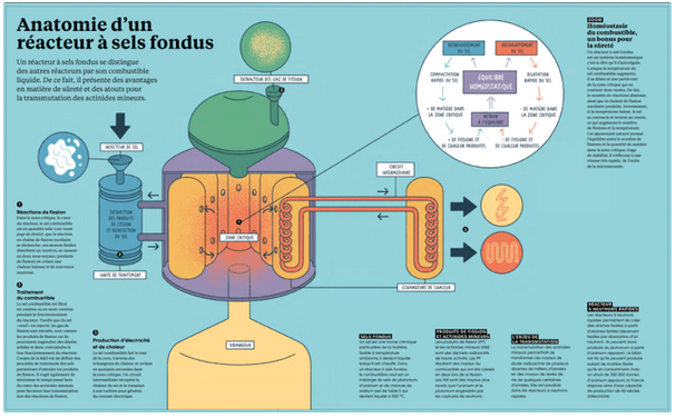 En cas de coupure de courant, il n’y a pas de perte de contrôle, mais une extinction automatique et passive en toute sécurité. Enfin, la méthode réduit significativement les déchets radioactifs, et peut même recycler les déchets issus des réacteurs à uranium.